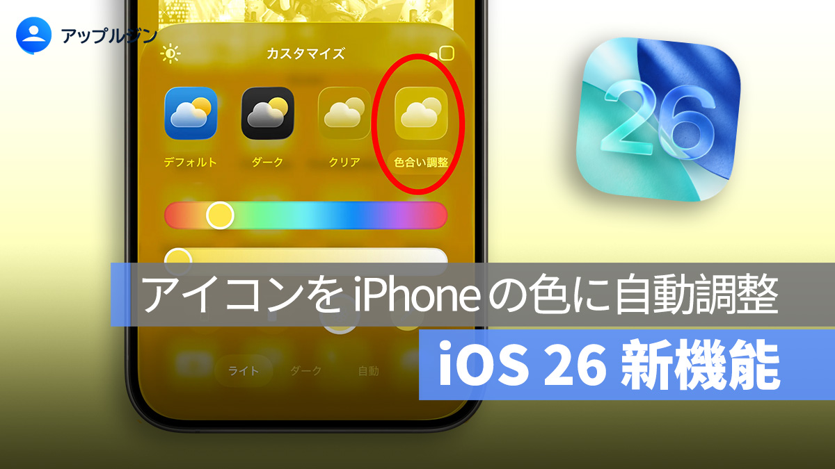 iOS 26 にアップデート済みのユーザーであれば、ホーム画面の編集機能にある「色調を合わせる」オプションを使って、自動で iPhone 本体やケースの色を認識し、アプリアイコンの色をそれに合わせて変更することができます。