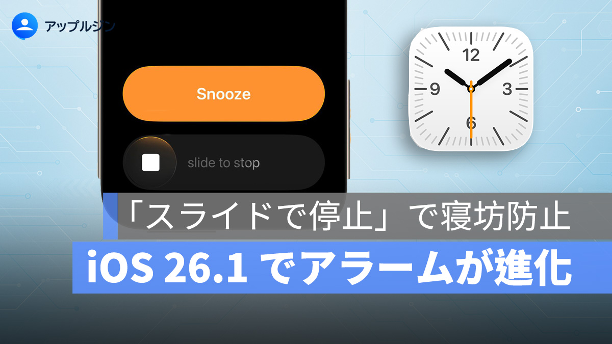 iOS 26.1 でアラームが進化:「スライドで停止」で寝坊防止