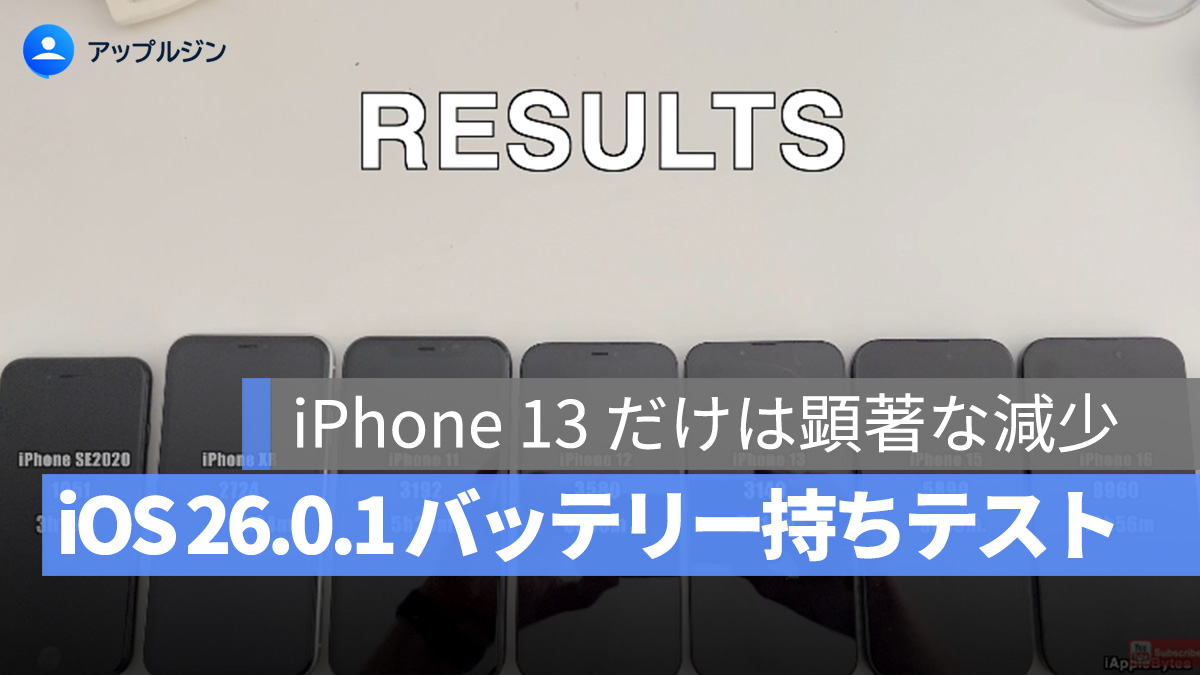 先週、Apple は iOS 26.0.1 をリリースし、複数のシステム問題を修正しました。このような小規模なアップデートは変更範囲が限られているため、通常はバッテリーの異常消費や発熱といった「アップデートによるトラブル」はほとんど発生しません。iAppleBytes によるバッテリー持続時間のテストでも、iOS 26.0.1 は安定したアップデートであることが確認されており、ほとんどの機種で影響は見られませんでした。ただし、iPhone 13 だけが予想外に明らかなバッテリー持続時間の低下を示しました。