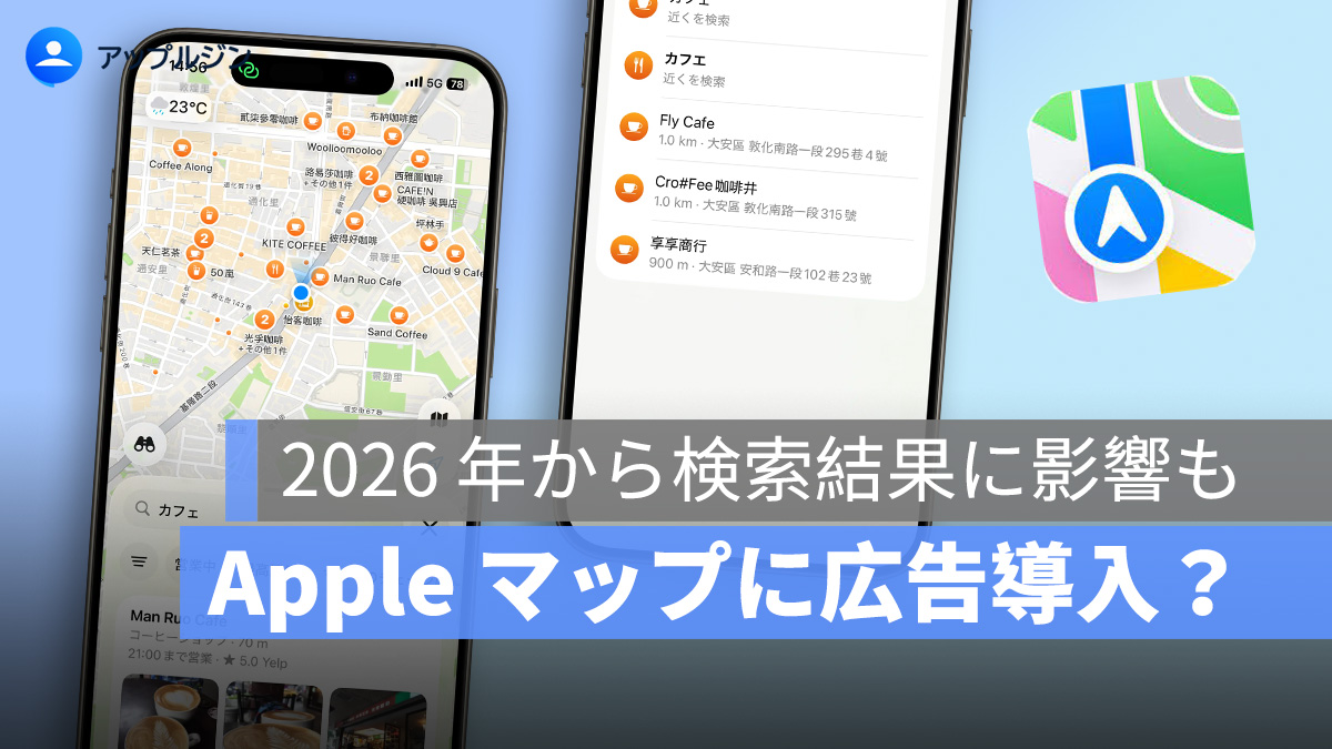 Bloomberg の記者 Mark Gurman 氏のニュースレター「Power On」によると、Apple は 2026 年を目標に、Apple マップの検索結果に広告システムを導入する計画を進めているとのことです。
