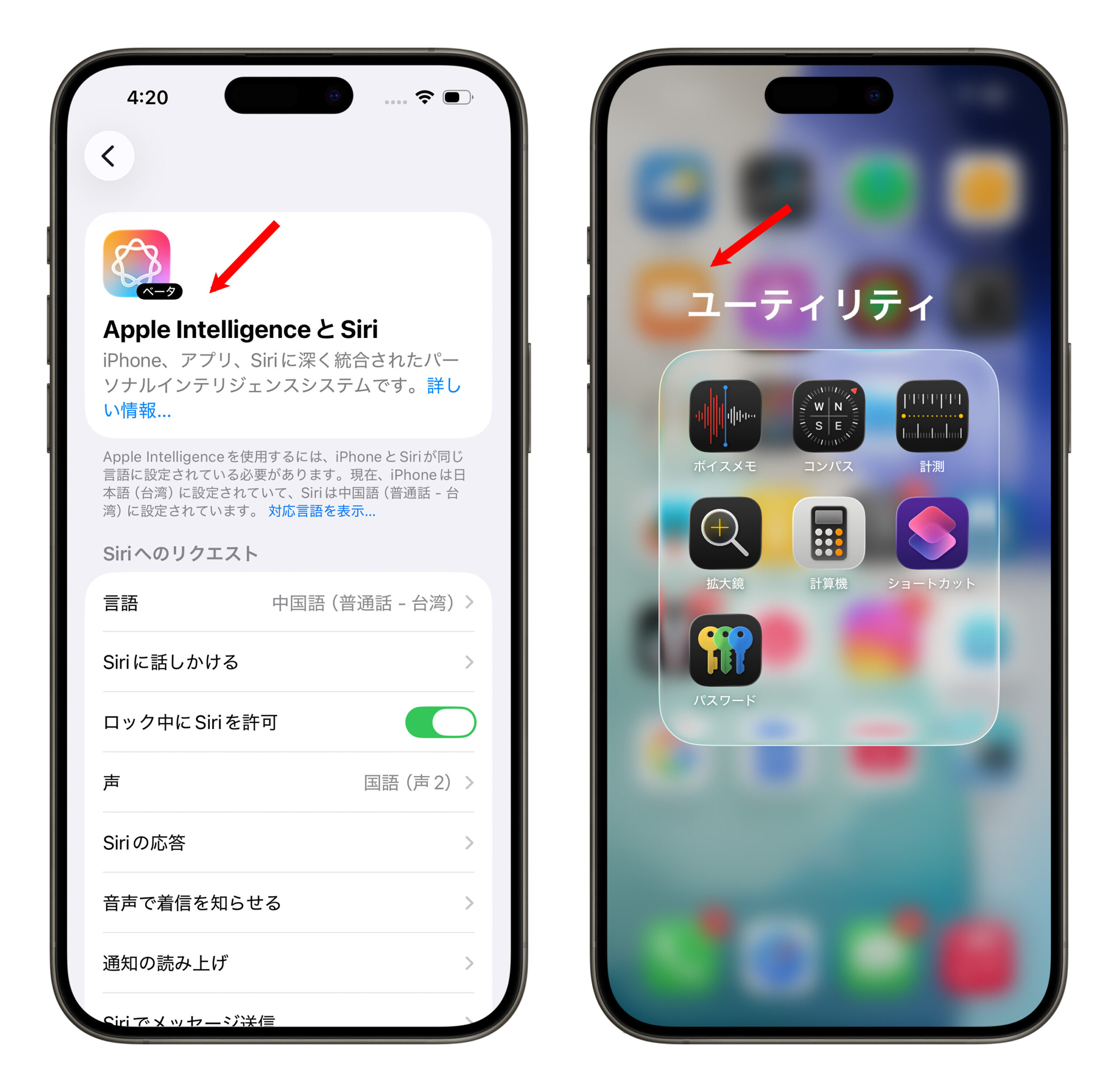 少しユニークな変更として、iOS 26.1 では「設定説明テキスト」および「アプリフォルダ名」がすべて左揃えに統一されました。理由については公表されていませんが、見た目の印象が従来と少し異なります。