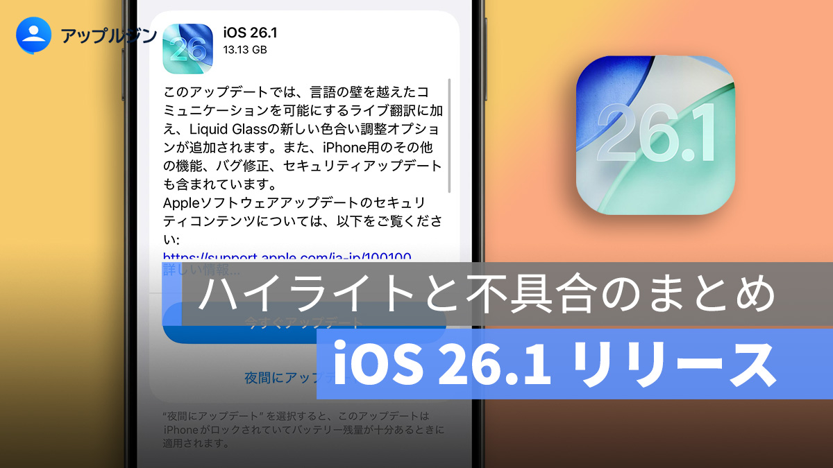 1か月以上にわたるテスト期間を経て、Apple は本日(11 月 4 日未明)ついに「iOS 26.1」を正式にリリースしました。