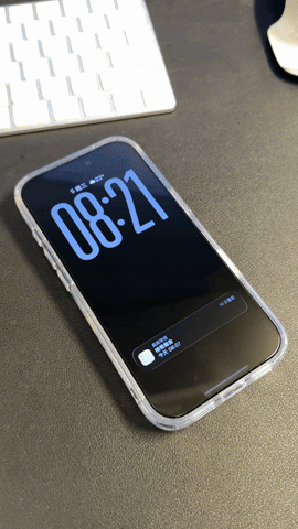 リマインダーに「緊急」設定を追加することで、アラーム形式の通知が利用可能に。通知が鳴ると、「スヌーズ」「スワイプで終了」が表示され、スヌーズを選ぶとロック画面にカウントダウンと「完了」「再スケジュール」ボタンが表示されます。従来の通知とは異なり、ブルー系のデザインで視認性が向上しています。