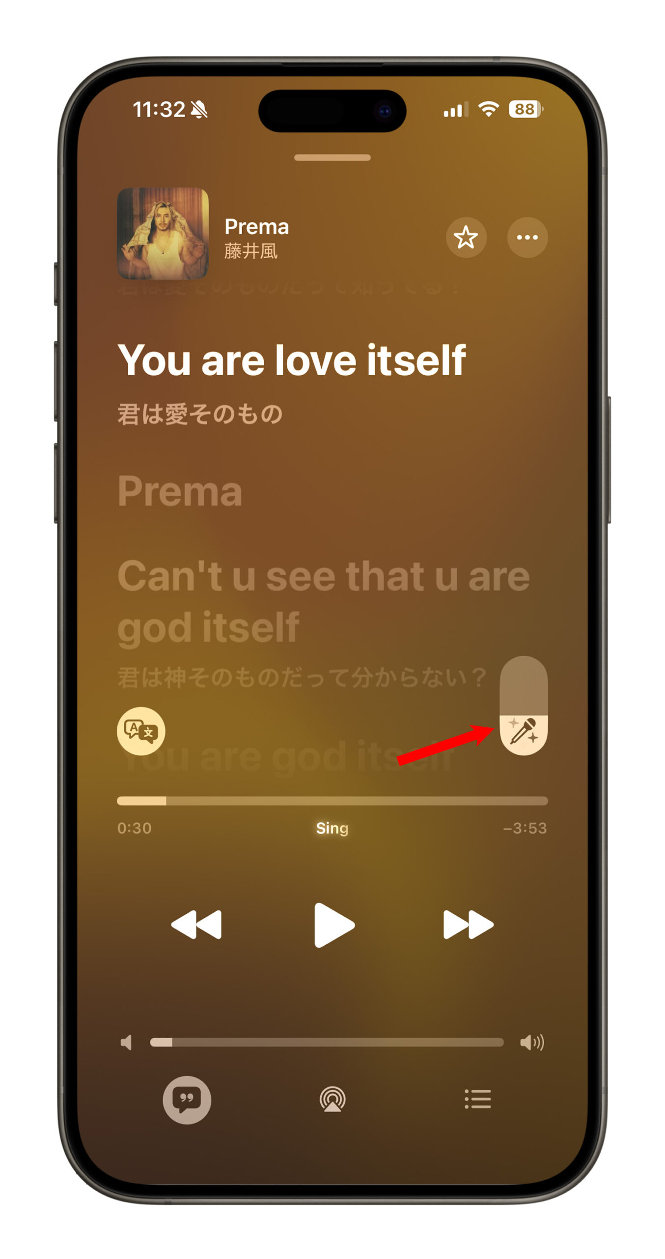 - 歌詞が表示されたら、右側に「マイク」アイコンが現れます。