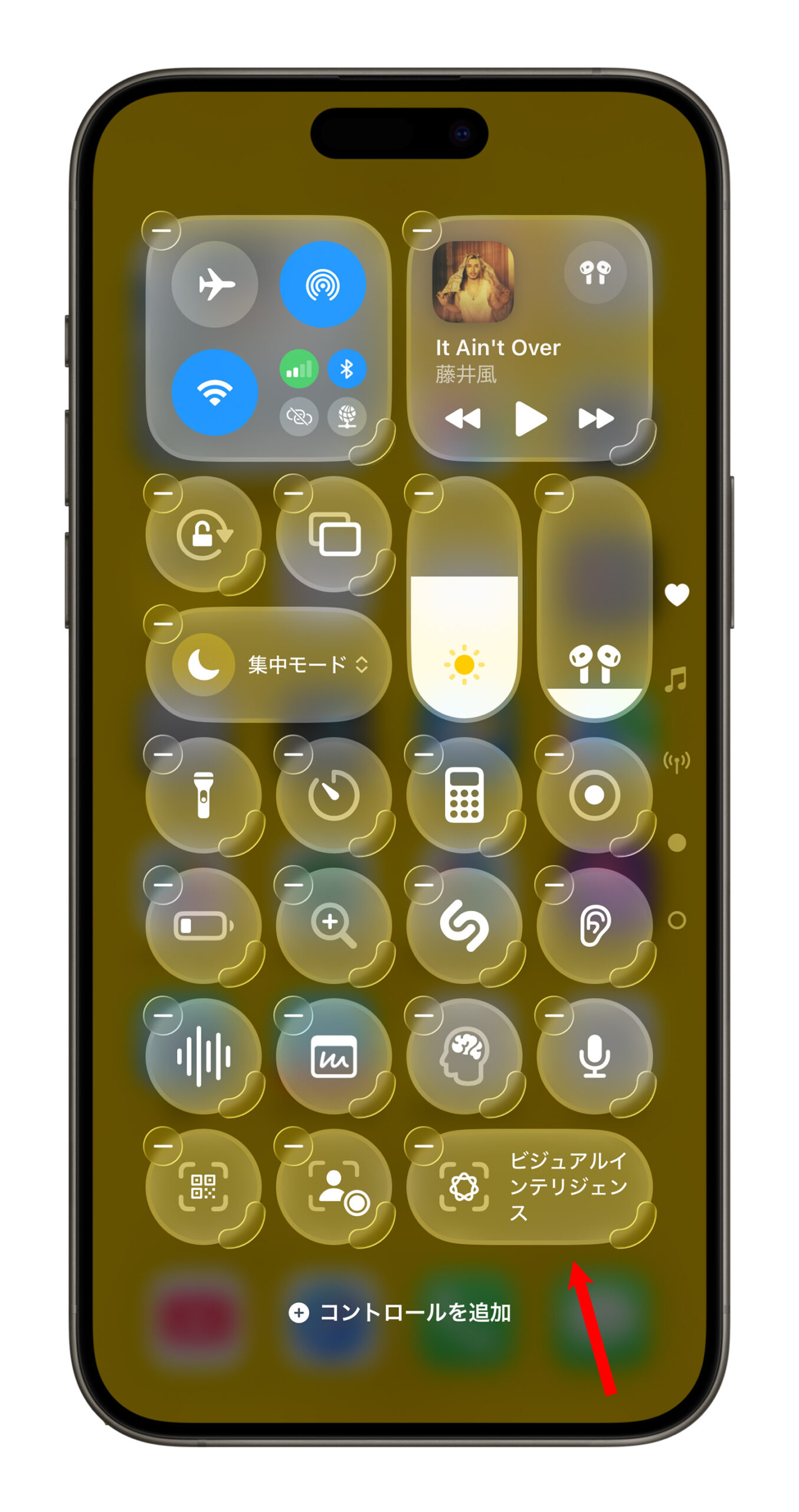 「コントロールセンター」を開き、編集モードで「コントロールを追加」→「ビジュアルインテリジェンス」を追加。