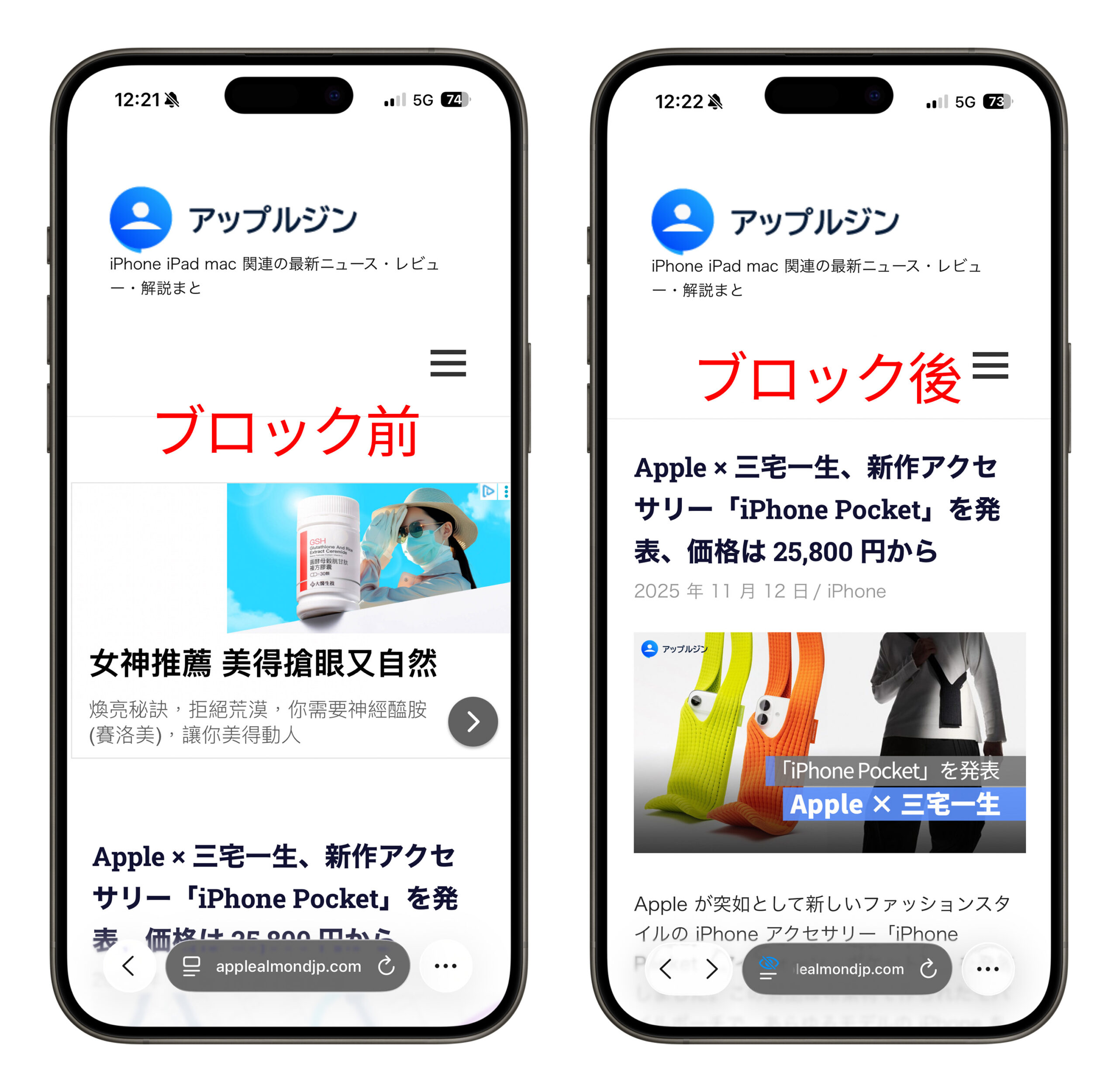 外部プラグインのインストールも、脱獄も不要で、煩わしい要素を簡単にブロックできるのです。