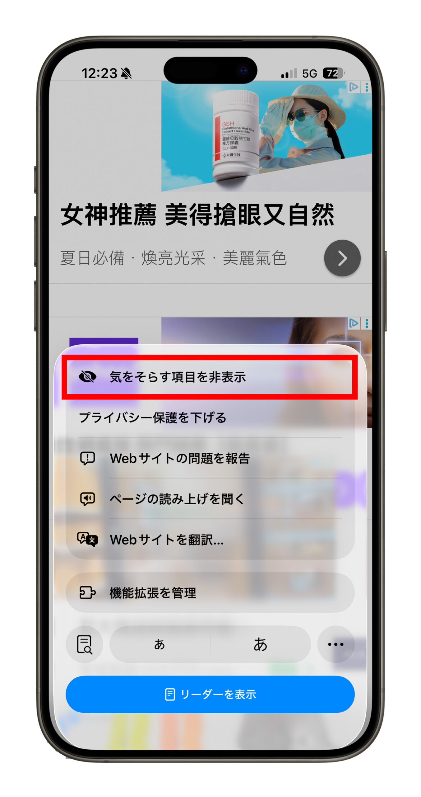 「広告が多すぎて読みづらい」と感じることがたまにあるユーザーにとって、Safari の「気をそらす項目を非表示」はとても便利で安全な選択肢です。