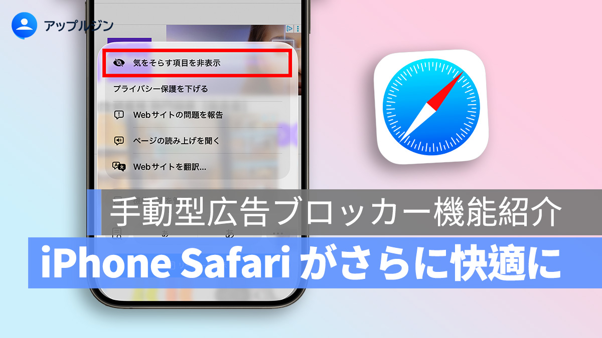 iPhone Safari がさらに快適に:広告やポップアップを手動で消せる機能「気をそらす項目を非表示」