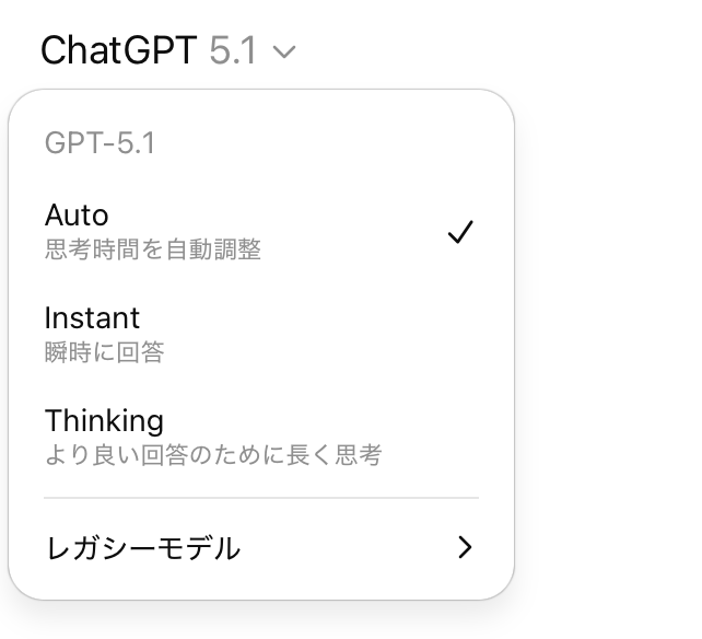 OpenAI は、これまで GPT-5 に搭載されていた「Instant(即時)」と「Thinking(思考)」の 2 つのモードを、さらに細かく調整しました。