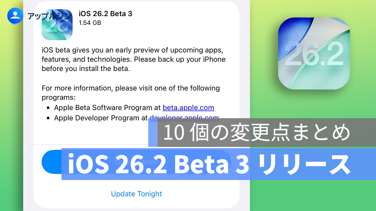 Apple は iOS 26.2 Beta 3 を公開しました。今回のアップデートでは、AirDrop、リマインダー、ゲームアプリなど、日常的によく使われる機能に多くの改良が加えられています。さらに、日本では Siri 以外の音声アシスタントを選択できる新機能もテスト中です。