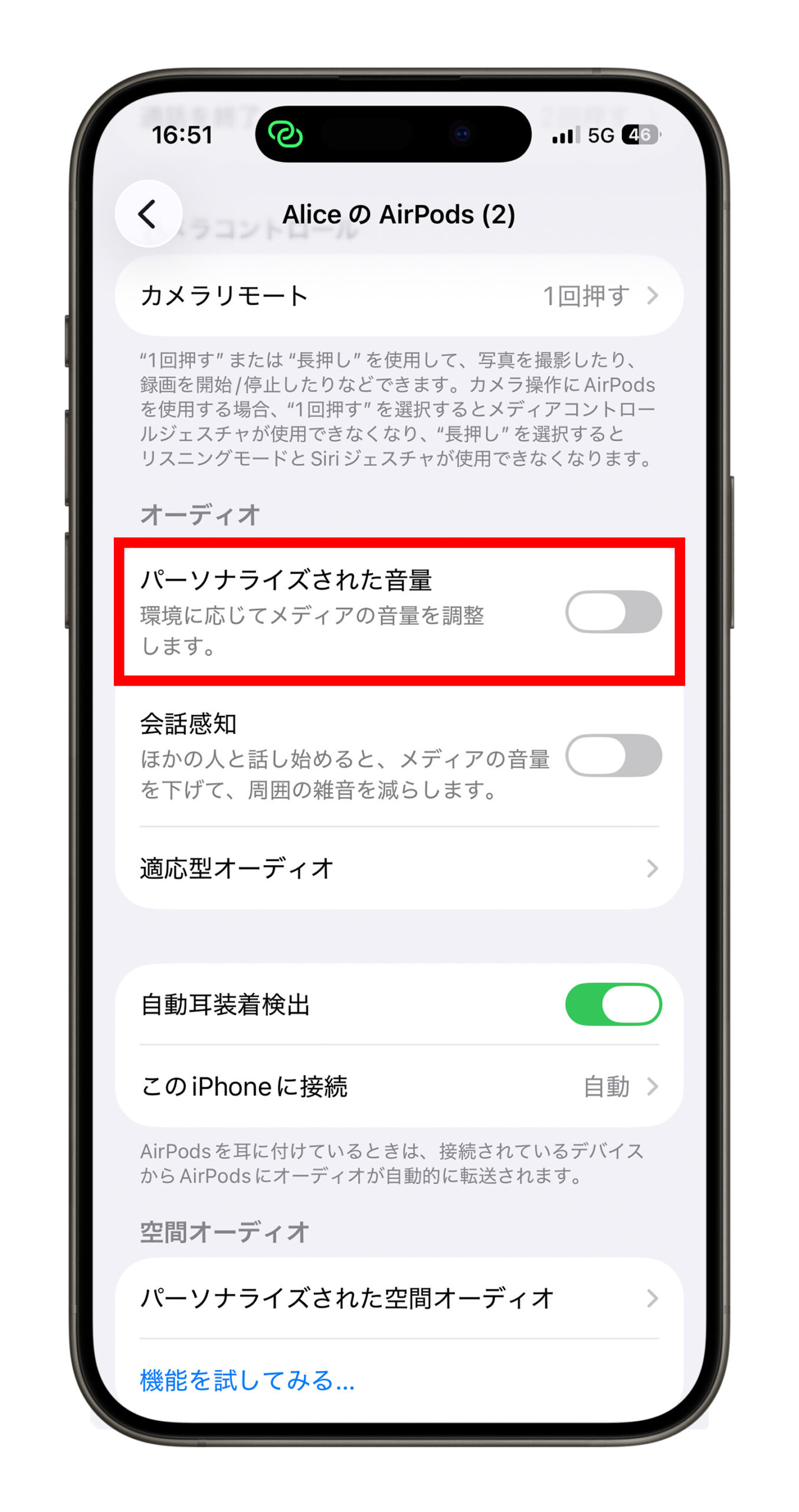 もしあなたが自分で音量を調整したいタイプで、システムに任せたくない場合は、これら2つの設定をオフにして、AirPods Pro の「音量が急に変わる問題」が改善するか試してみるとよいでしょう。