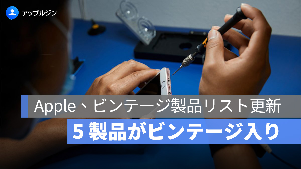 今回の更新で、以下の 5 製品がビンテージ製品に追加されました。もしこれらのデバイスを使用していて修理を考えている場合は、早めの対処をおすすめします。