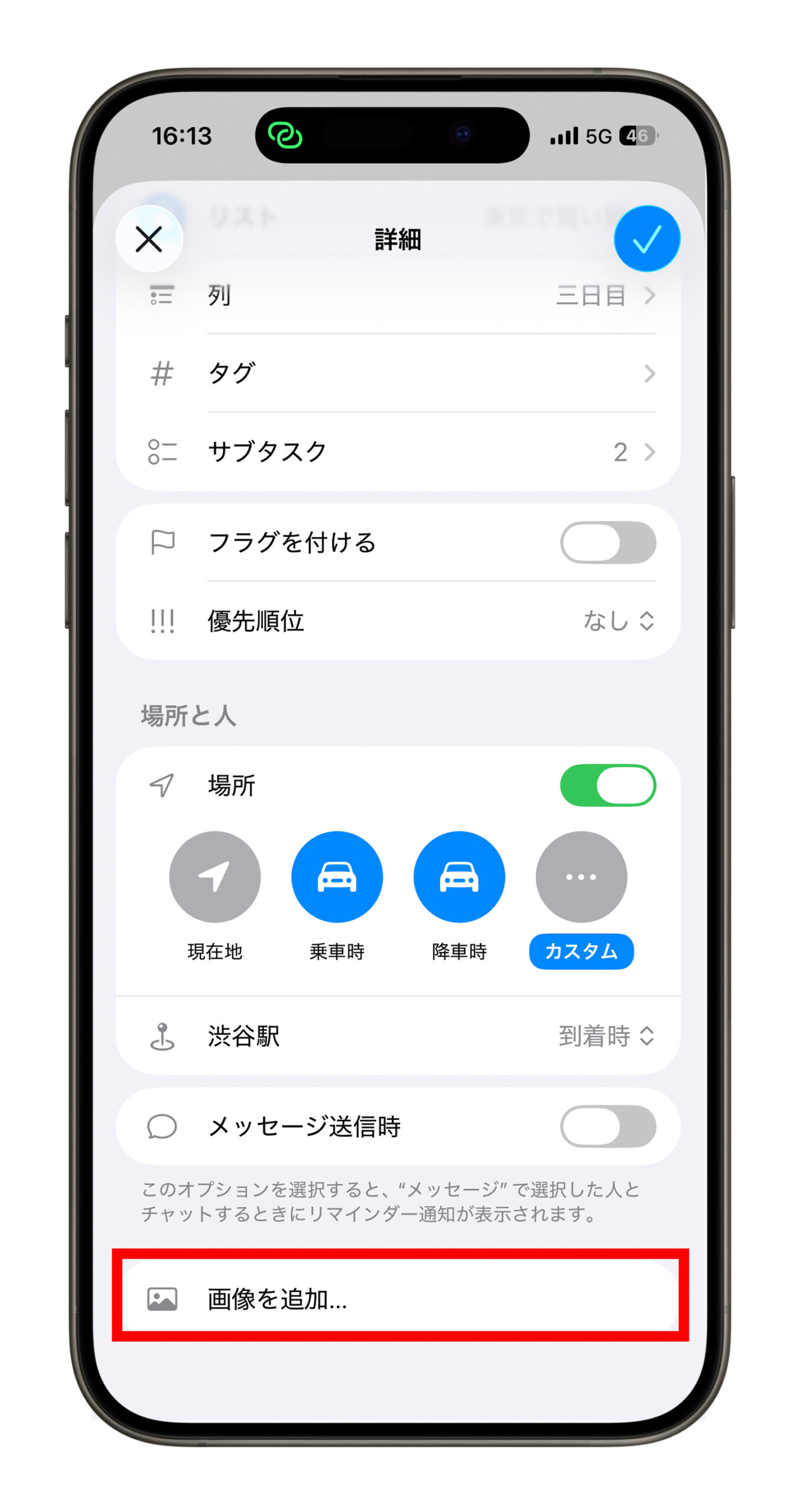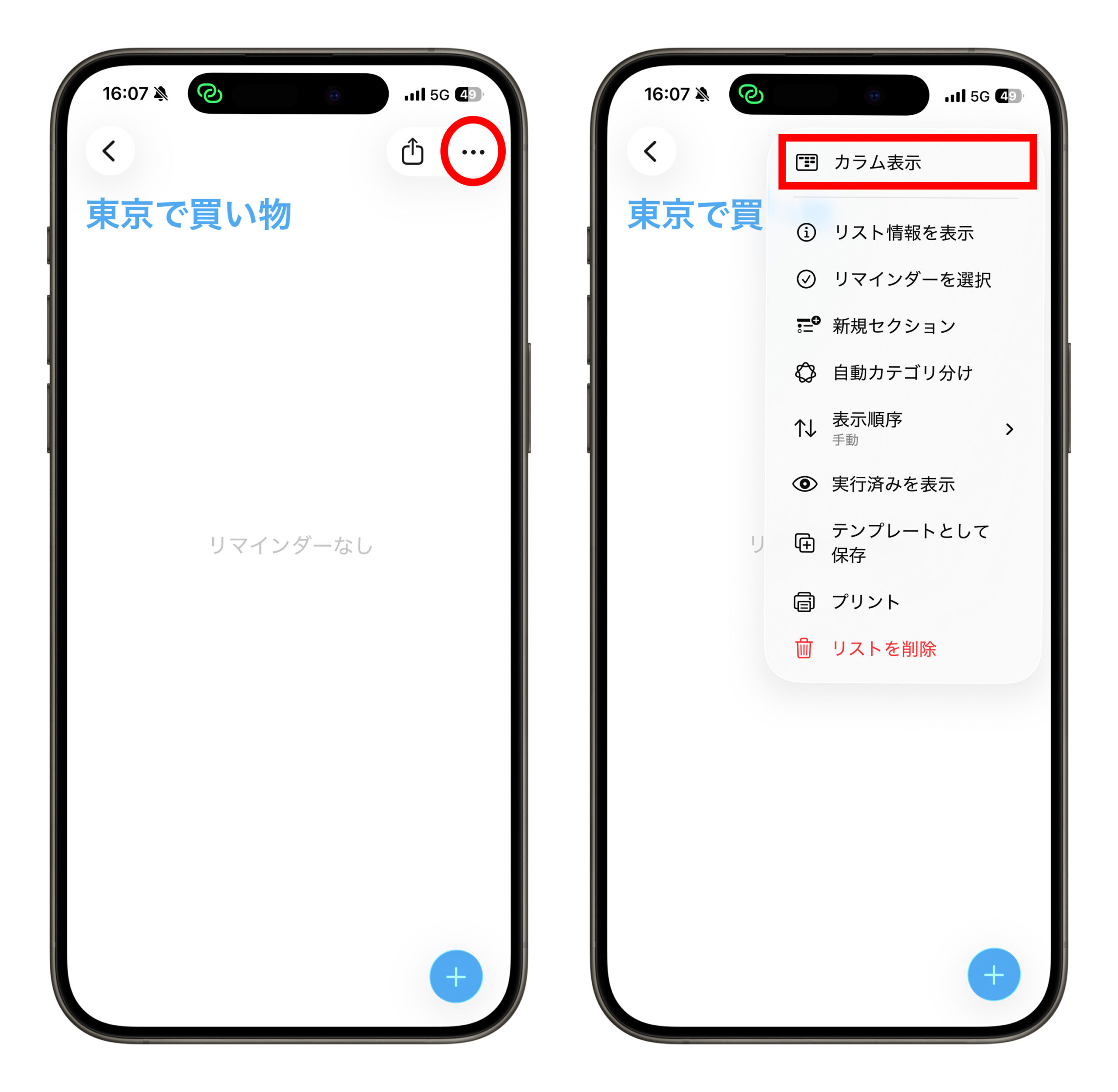 リマインダーのカラム表示は「持ち物リスト」としても活用可能